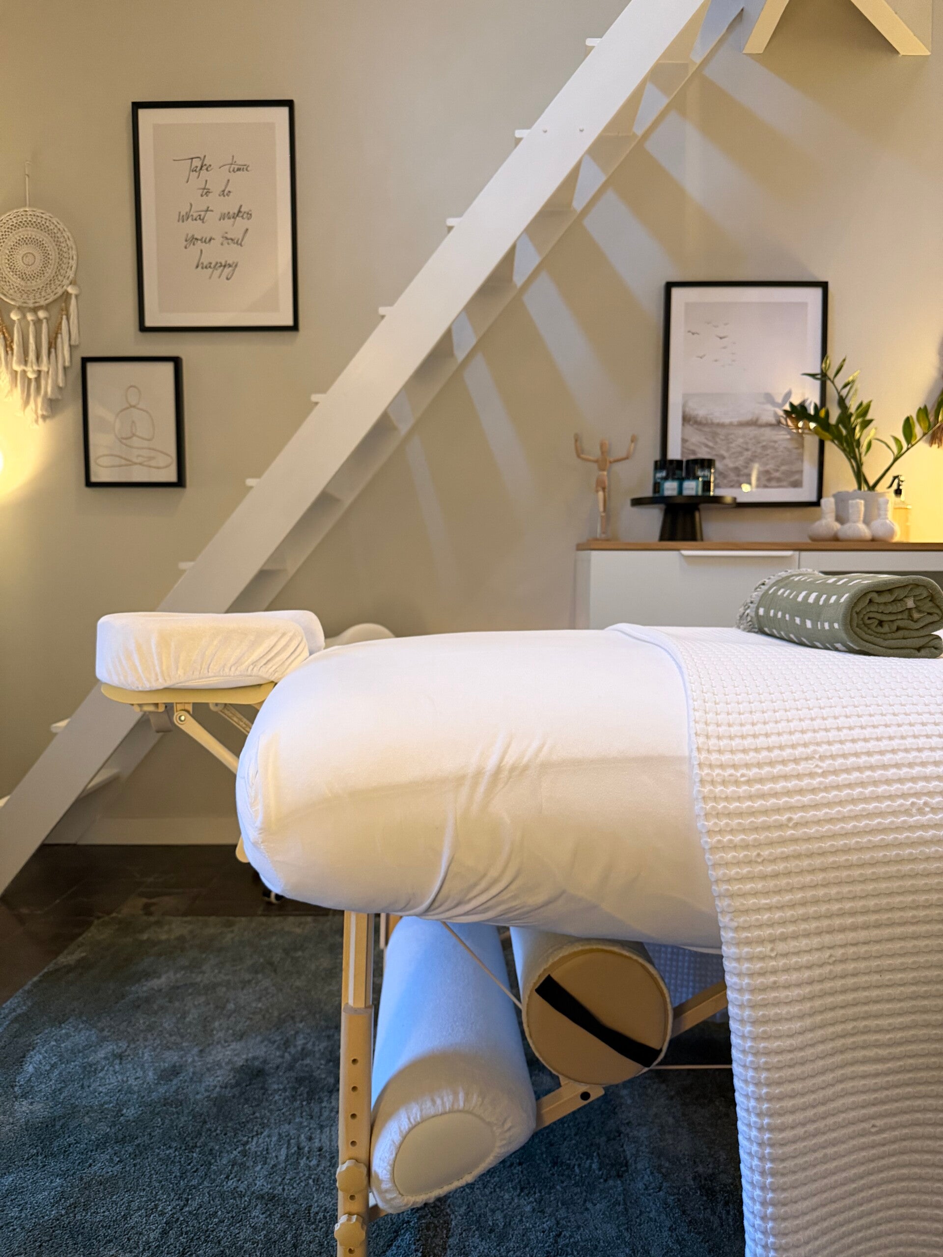 Een massage op locatie? Geen enkel probleem! Ik neem het gereis graag voor je uit handen, zodat jij optimaal kunt ontspannen in je eigen vertrouwde omgeving. Voor deze service reken ik €0,50 per gereden kilometer (vanaf mijn woonplaats) en een vaste locatietoeslag van €25,- euro.